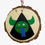 Hand-painted wood ornament, black monster with green horns